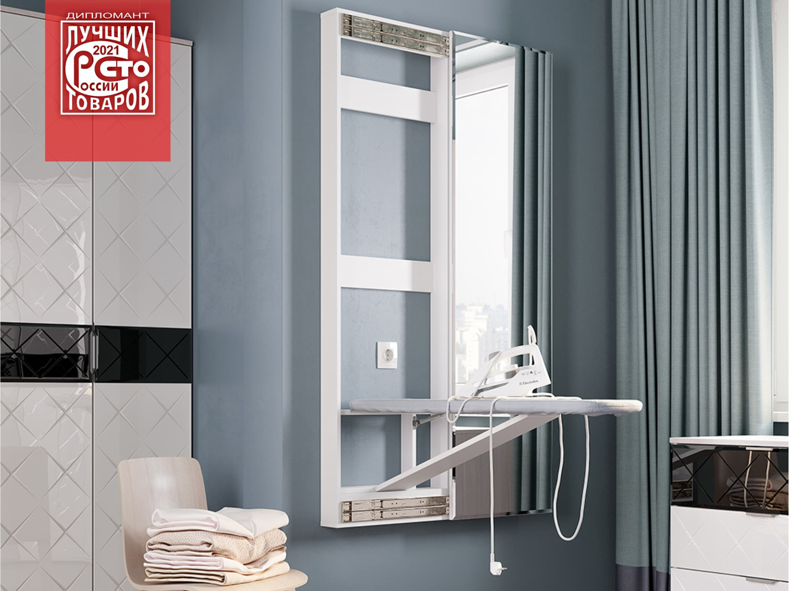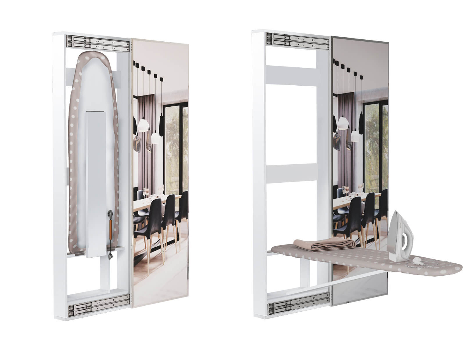 - Гладильная доска Смарт купе с зеркалом белая