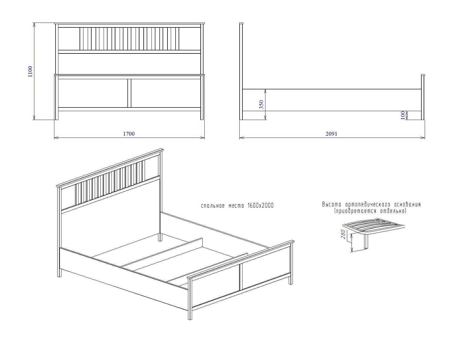 Спальное место: 1600*2000 мм