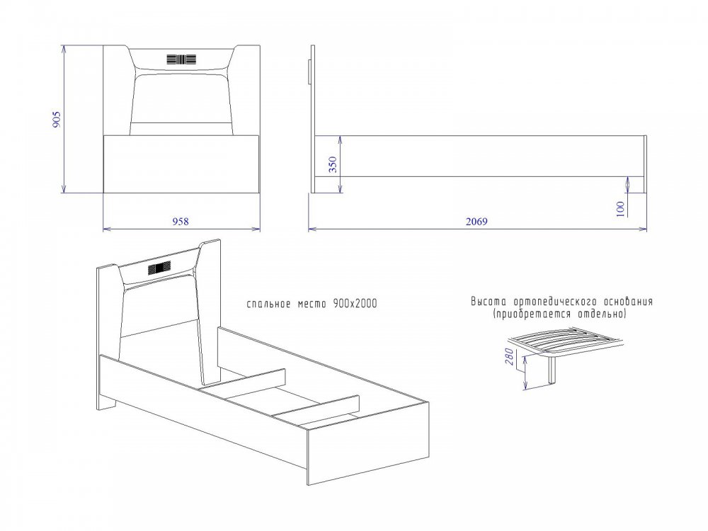 Спальное место: 900*2000 мм