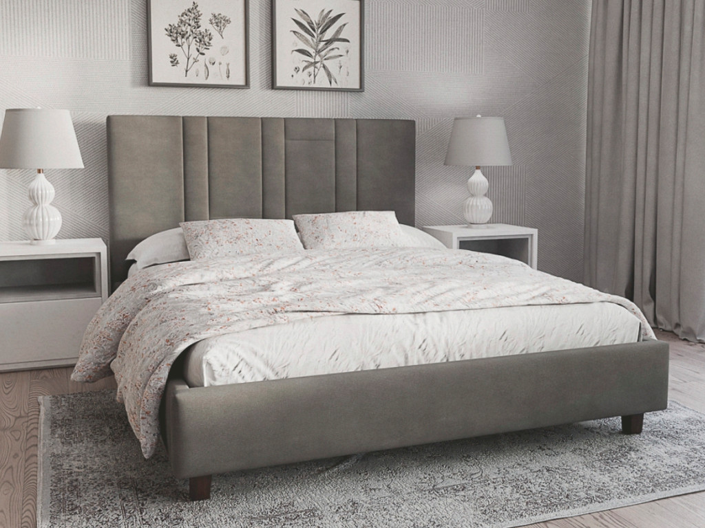 Кровать имеет подъемное ортопедическое основание и короб с дном из МДФ.