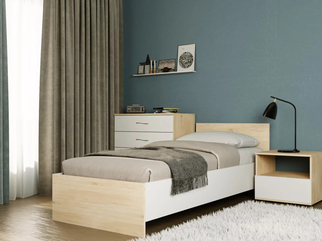 - Кровать Монблан 90х200 см Белый Шагрень-Дуб сонома