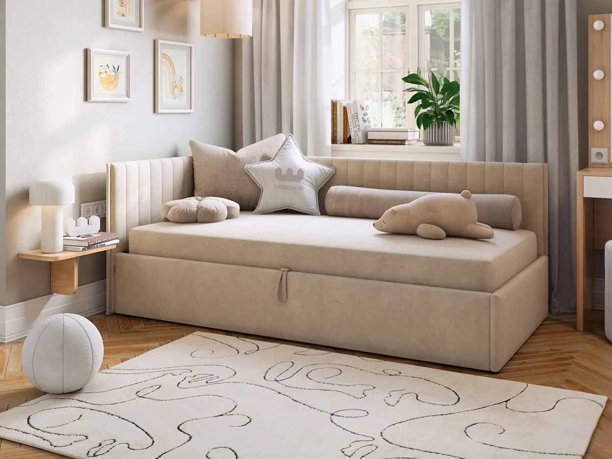 Кровать-тахта с подъемным механизмом Твикс цвет велюра капучино