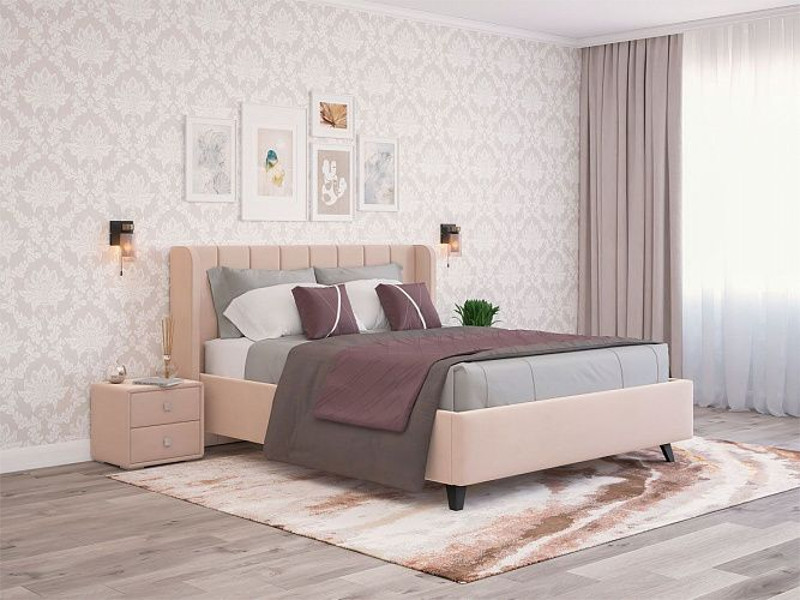 - Кровать Виола с ПМ 1400х2000 мм микровелюр бежевый