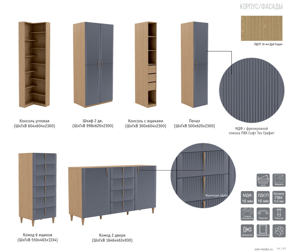 Цвет: ЛДСП Дуб седан/МДФ Графит