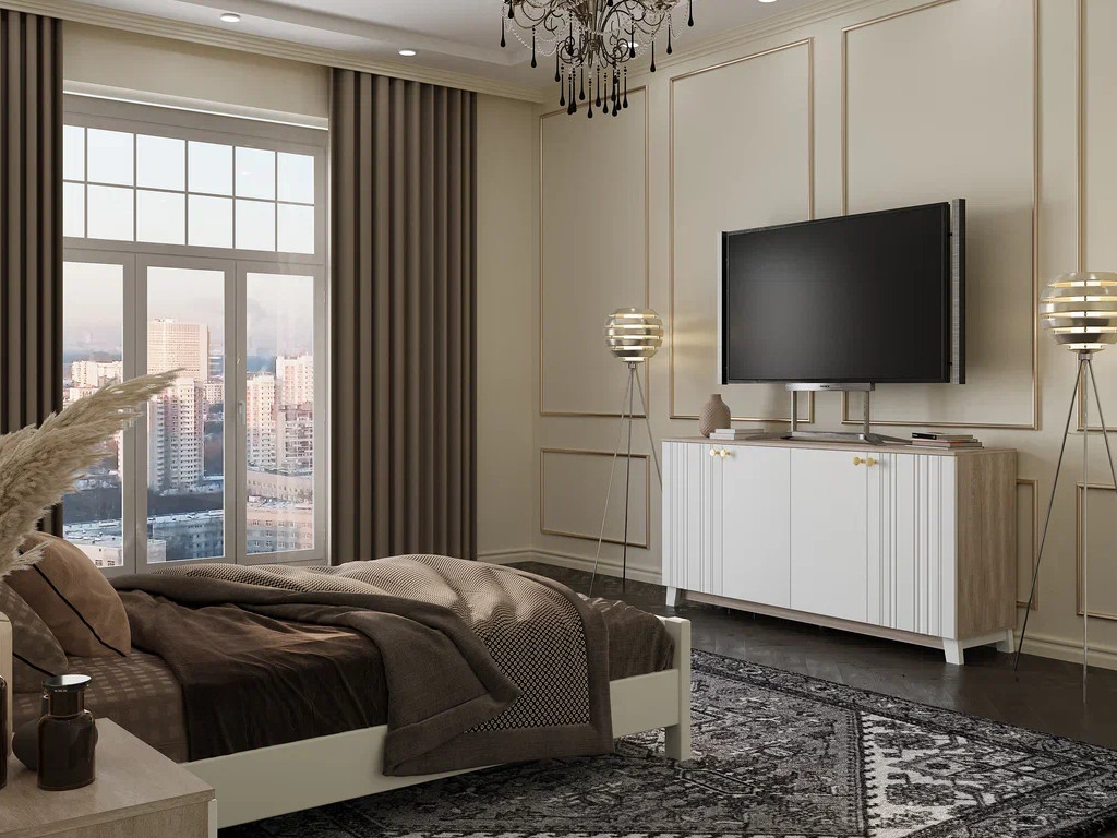 Цена за комплект: шкаф ШР-4, тумба прикроватная (2 шт), кровать двойная "Фрида" 1400, Комплектующие на кровать с ламелями 1400 мм, комод 3 ящика