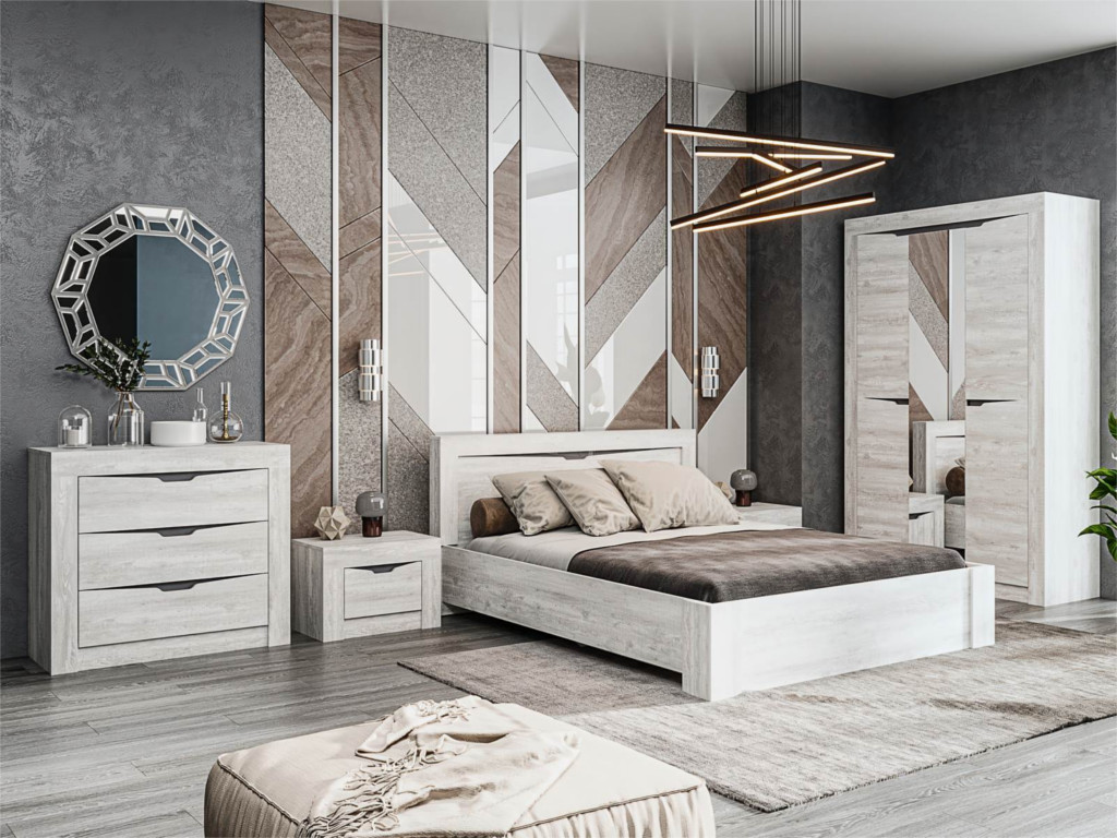 Цена за комплект: Комод, Кровать двойная 1200, Деревянное кроватное основание (1200), Тумба (2шт),Шкаф 3-х дверный