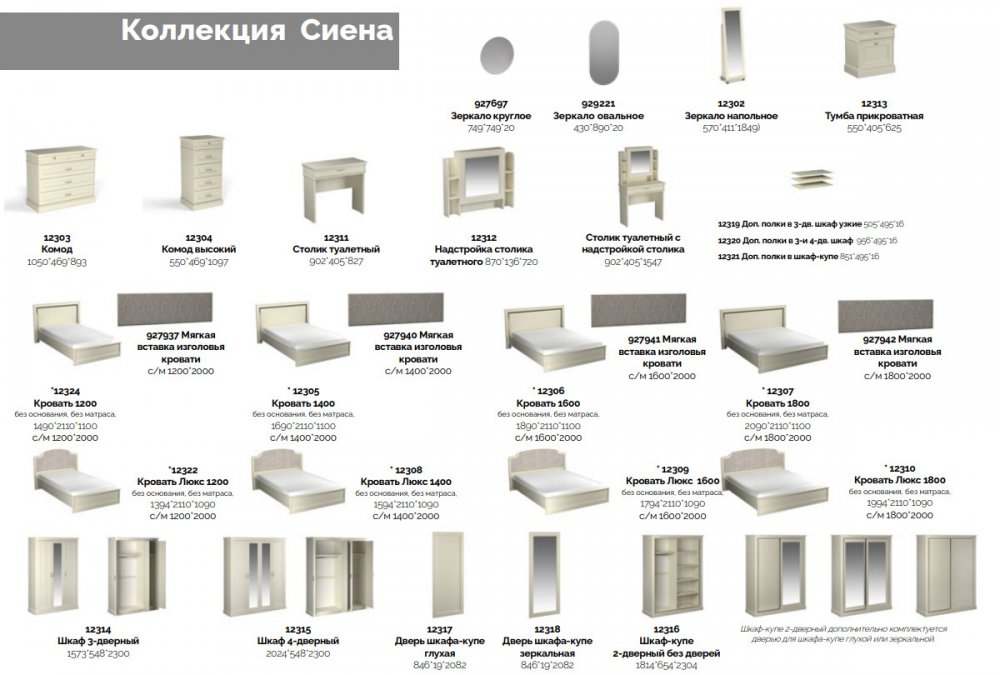 Цена за комплект: Тумба прикроватная (2 шт), Кровать Люкс с/м 2000*1400, Ортопедическое основание 1400, Шкаф 4-х дверный. Комод