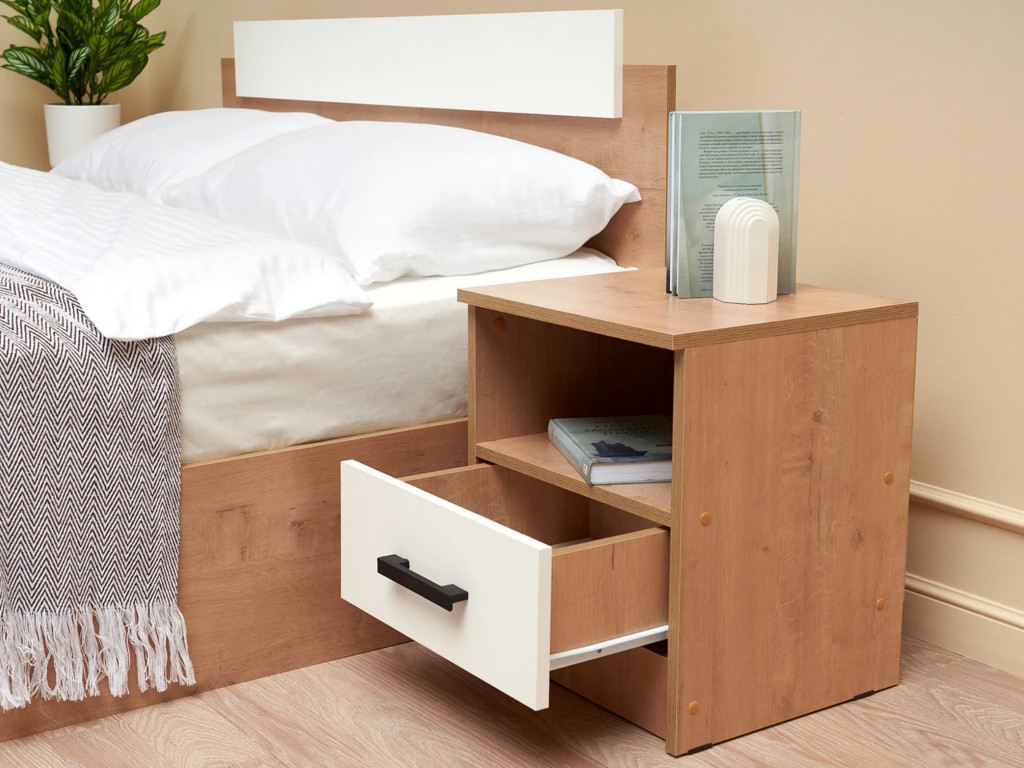 - Тумба прикроватная Эко вотан/белый гладкий