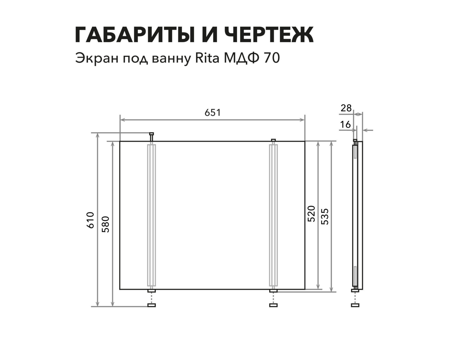 - Экран под ванну МДФ Rita 0,7 торцевой дуб