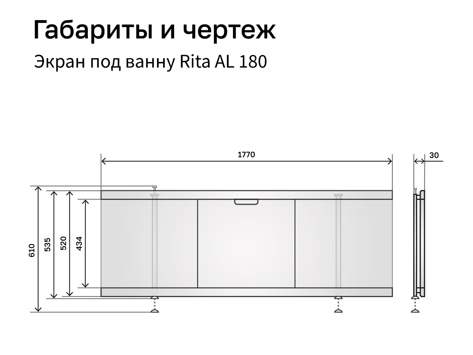 - Экран под ванну МДФ Rita AL 1800 мм