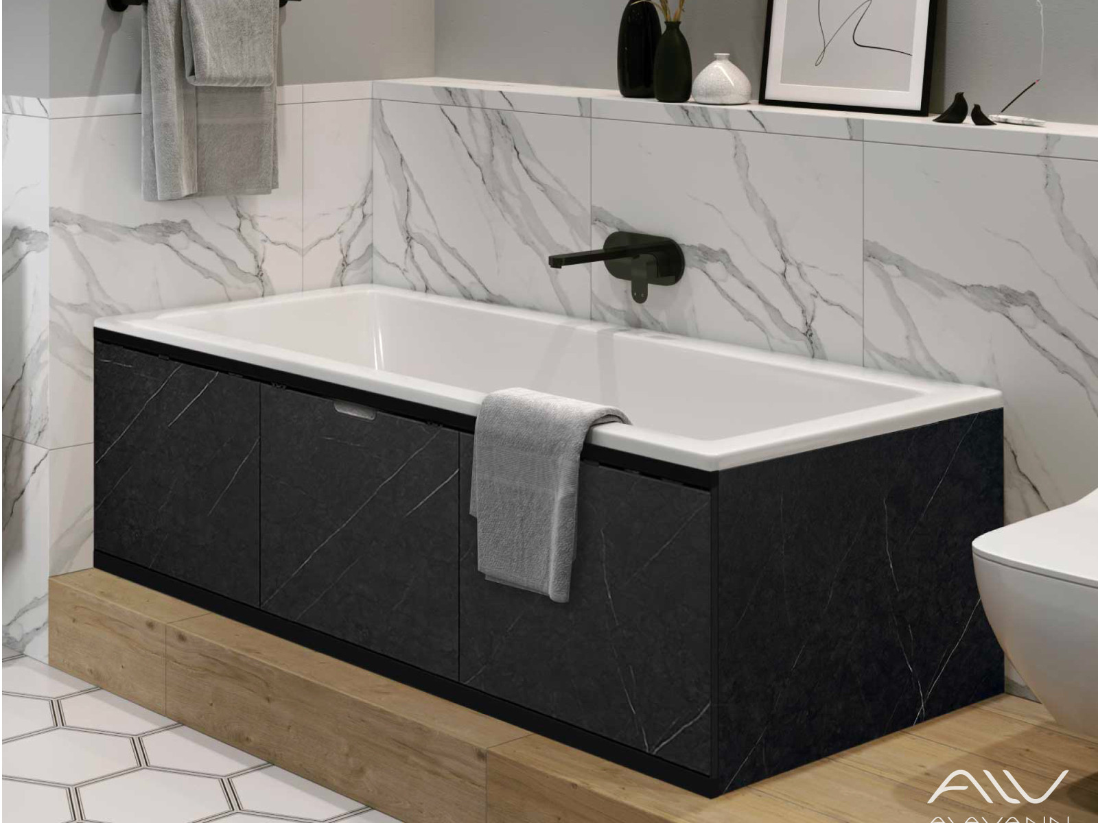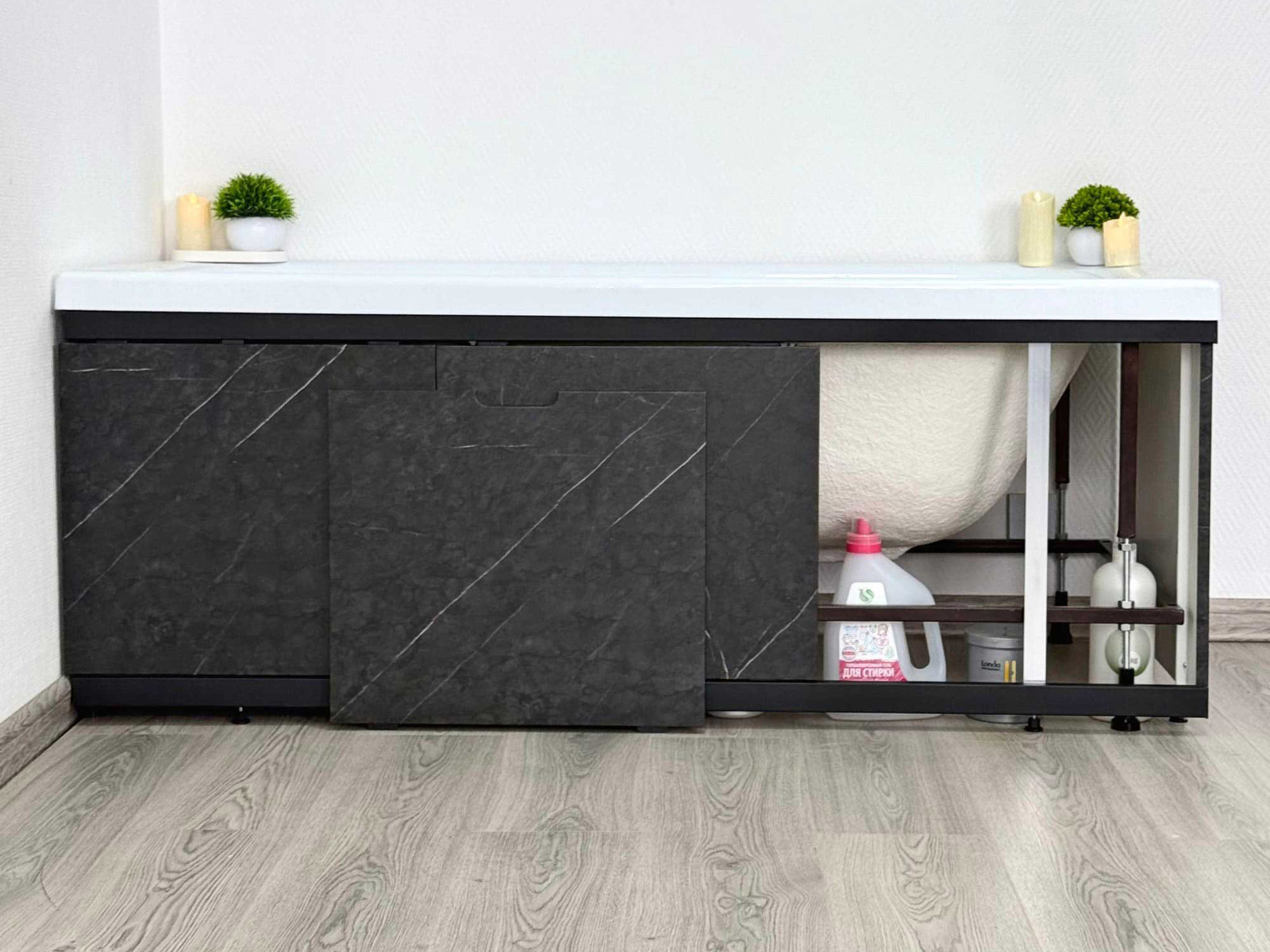 - Экран под ванну МДФ Rita Black 1500 мм черный мрамор