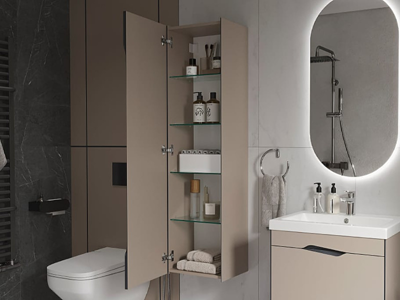 Система хранения: 1 дверца; 4 полки стеклянные, монтаж дверки универсальное (левое/правое) исполнение