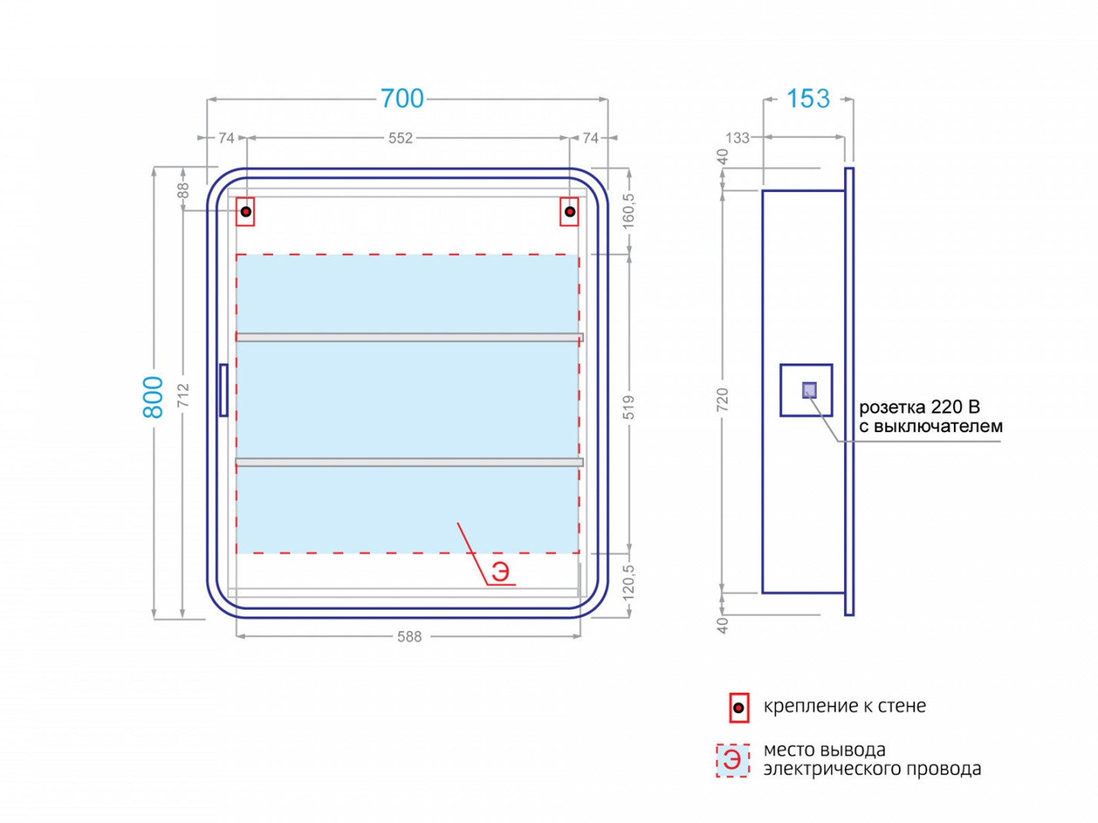 - Шкаф зеркальный Lana 70 белый холодный