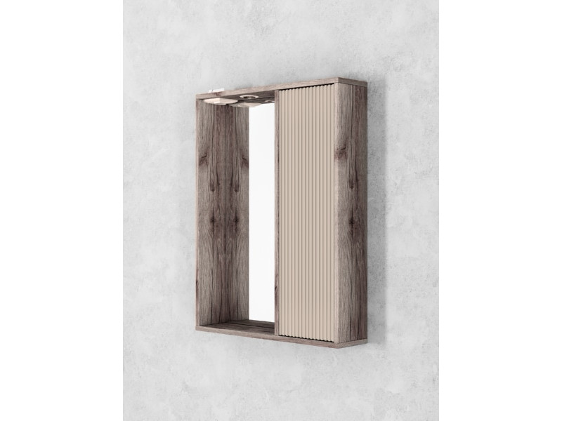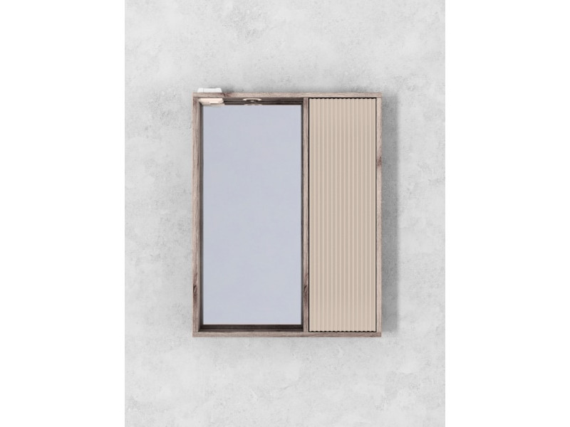 Шкаф-зеркало Рица 80 со светильником правый cерый/керамика