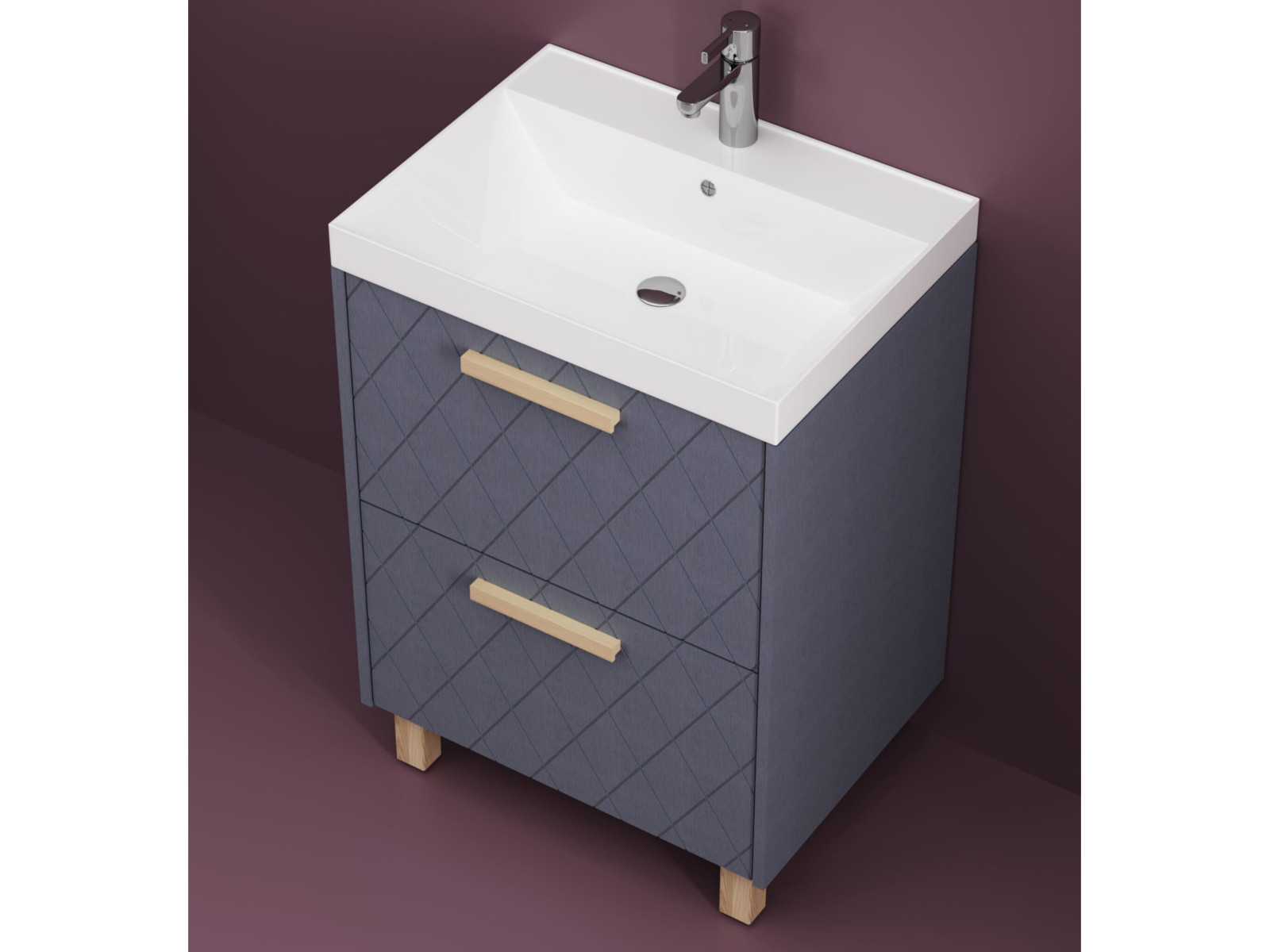 Тумба Кристалл 70 напольная 2 ящика ручка дуб + ум Слим 70