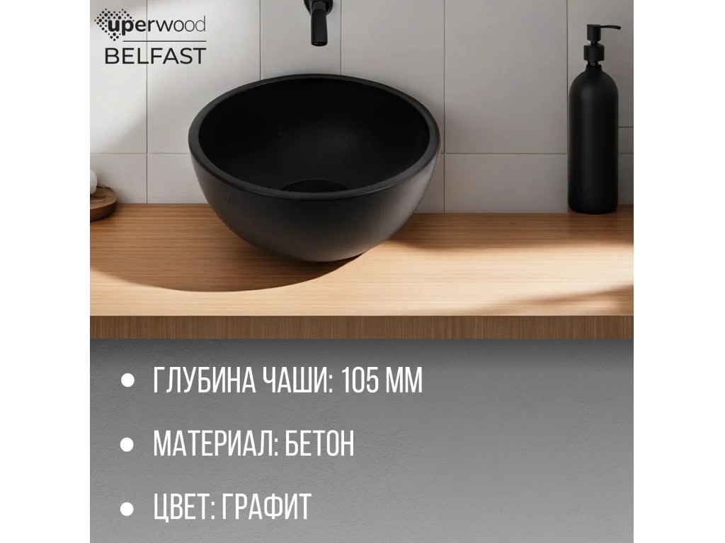 Раковина Uperwood Belfast бетонная черная