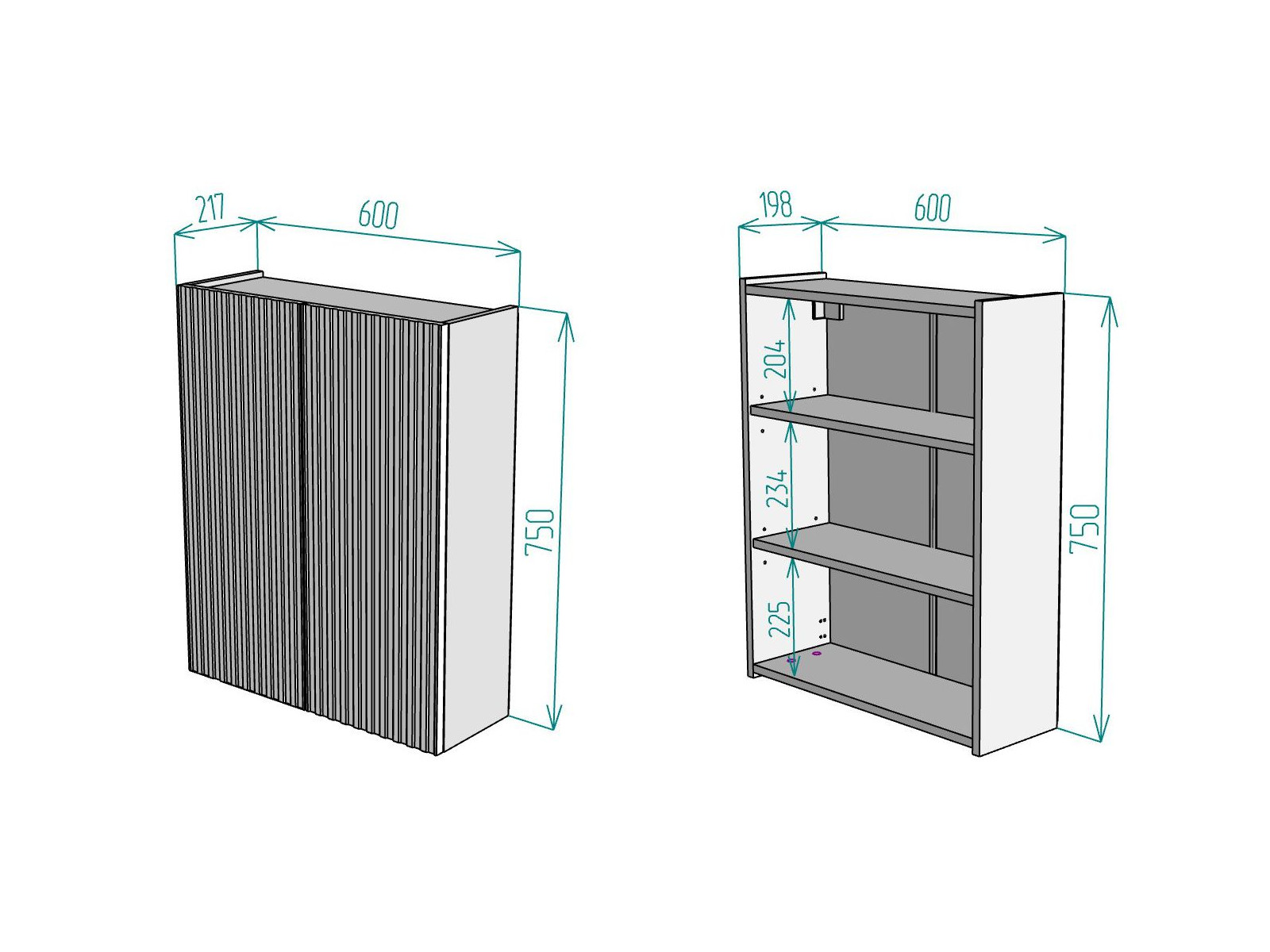 Размер ВхШхГ: 750х600х217 мм