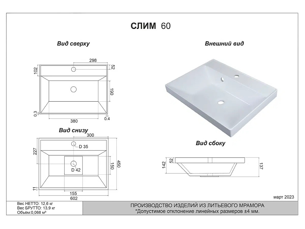 - Тумба Альба 60 напольная 2 ящика Слим 60 дерево