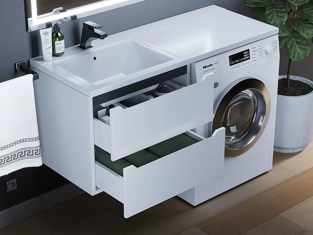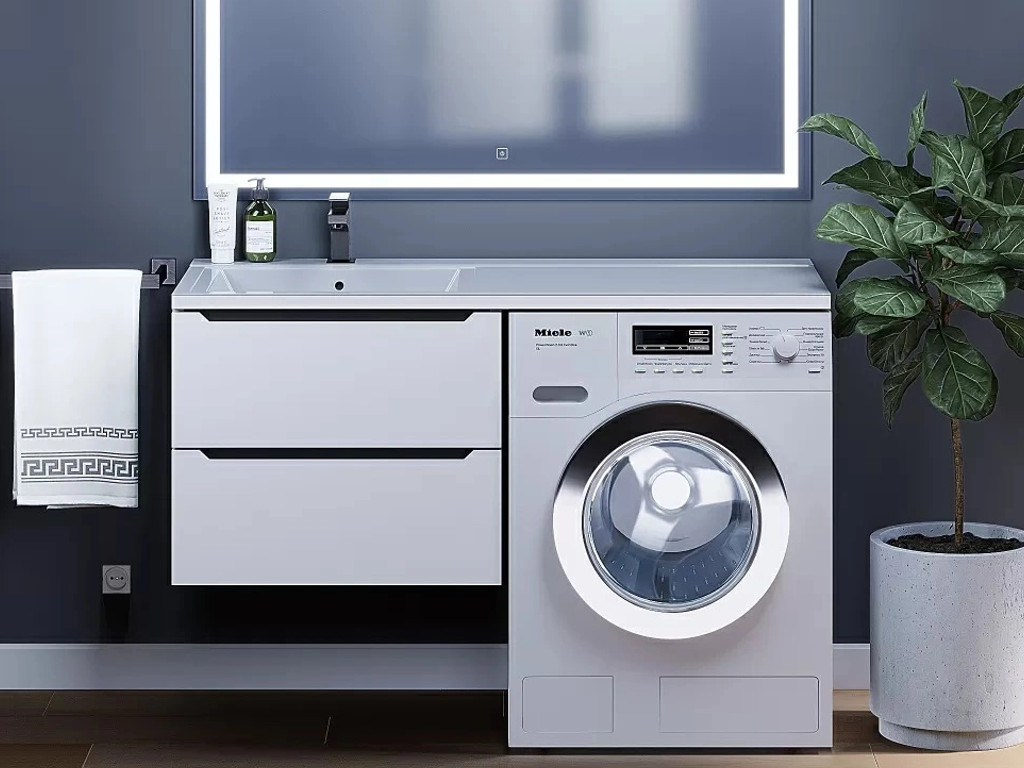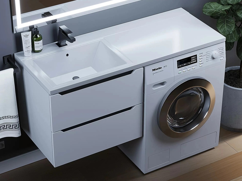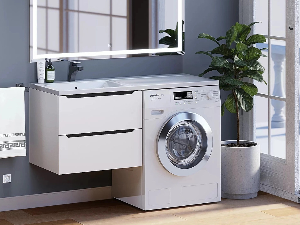- Тумба под стиральную машину Uperwood Tanos 60 см подвесная левая белый/графит