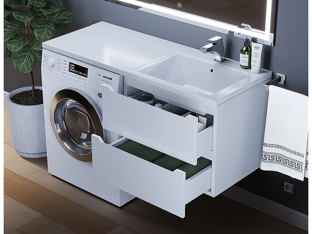 - Тумба под стиральную машину Uperwood Tanos 60 см подвесная правая белый