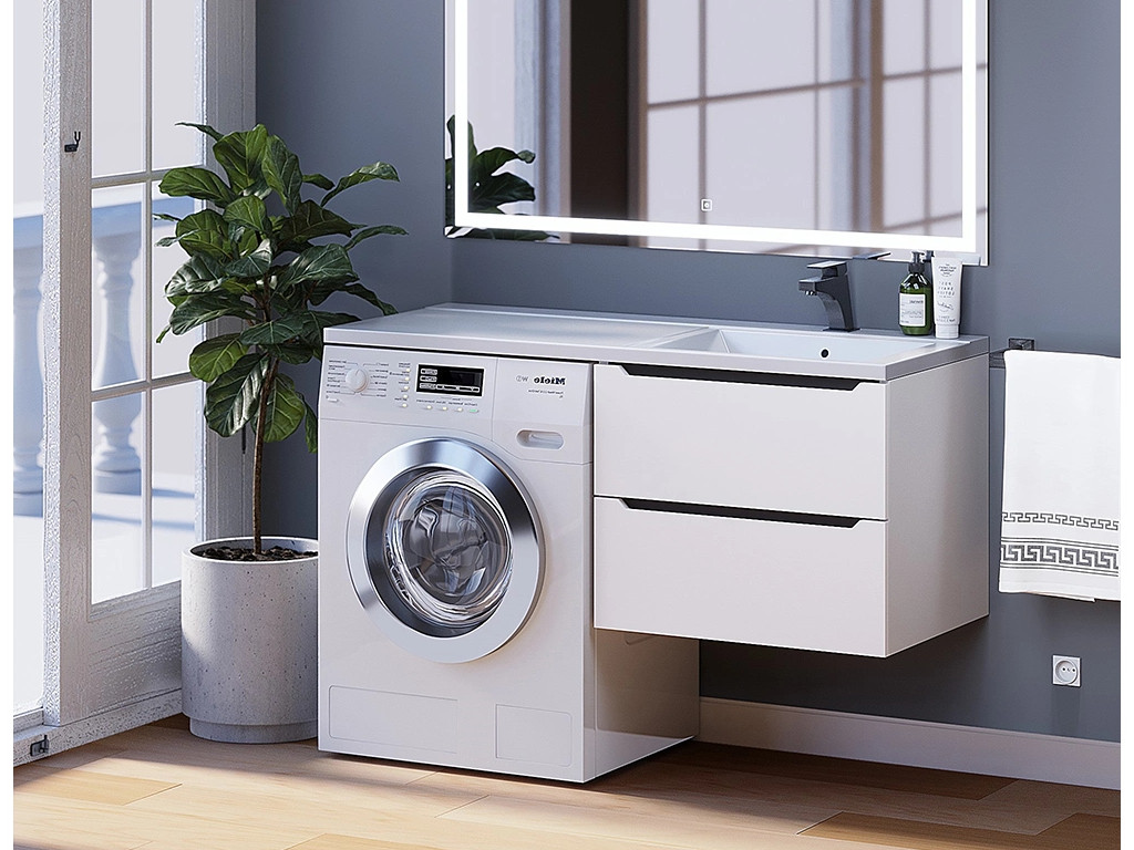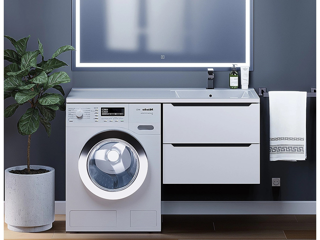 - Тумба под стиральную машину Uperwood Tanos 60 см подвесная правая белый/графит