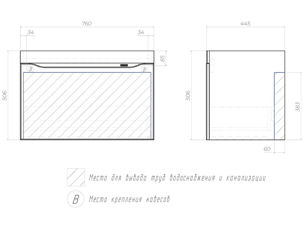 Материалы тумбы: влагостойкая МДФ, полимерное покрытие ПВХ, внутренние элементы из ЛДСП, европейская фурнитура