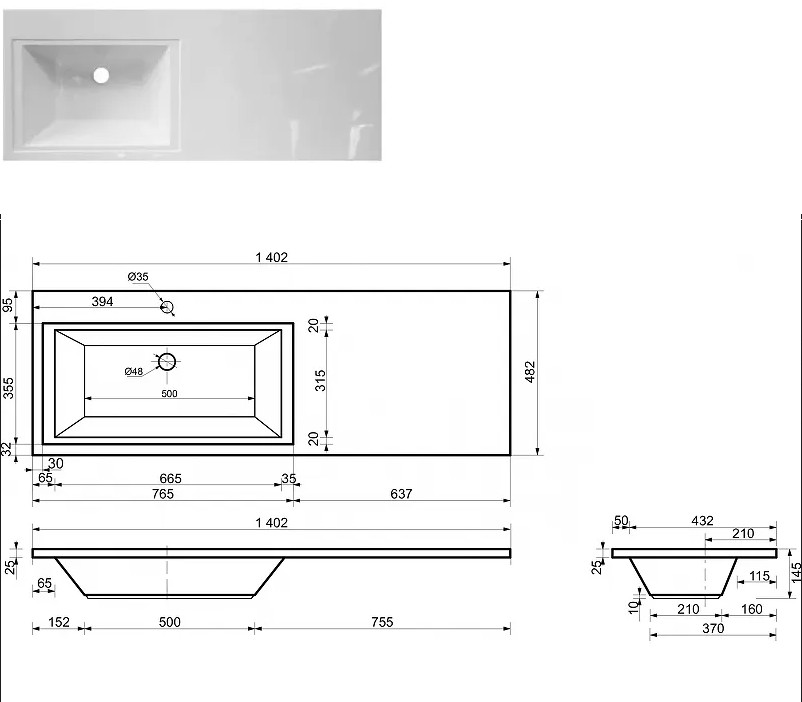 - Тумба с раковиной Dallas Luxe 1400 напольная 2 ящика левая