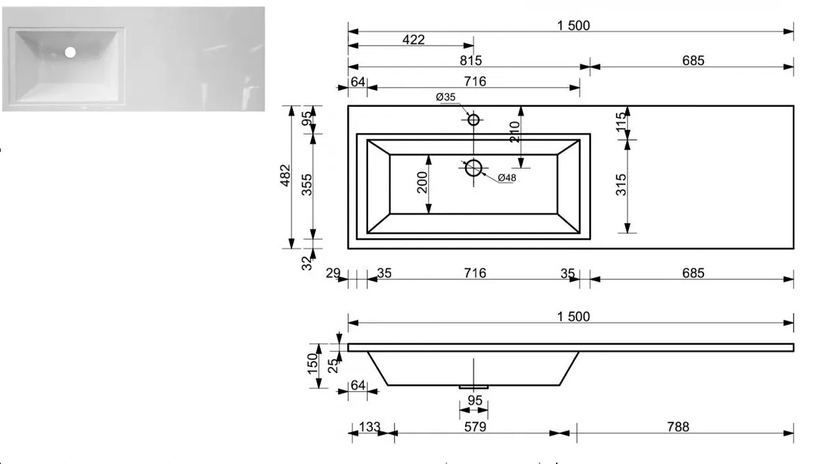 Размер ШхГхВ: 848/1500х476х885 мм