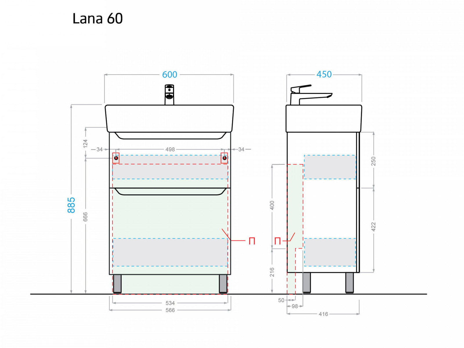 - Тумба с раковиной Lana 60 белая Умывальник Q 60