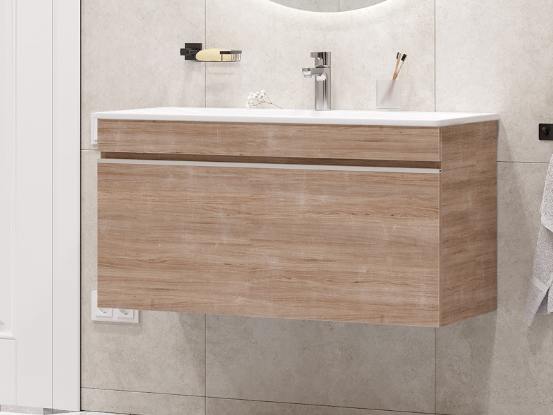 Тумба с раковиной Pulsus 100 подвесная дуб сонома