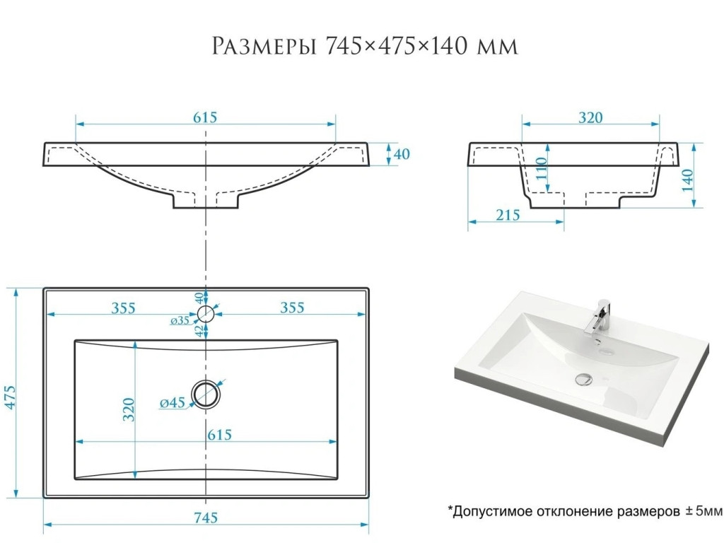 - Тумба с раковиной Uperwood Eva Дуб Харбор белый 75 см