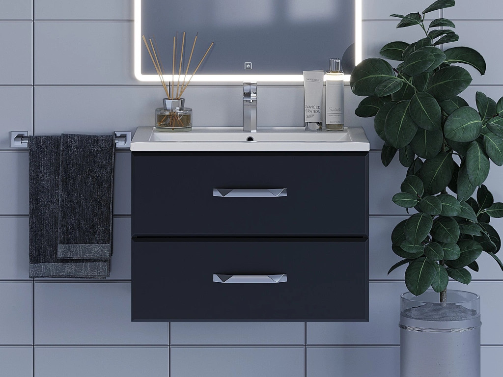 - Тумба с раковиной Uperwood Foster черная 70 см