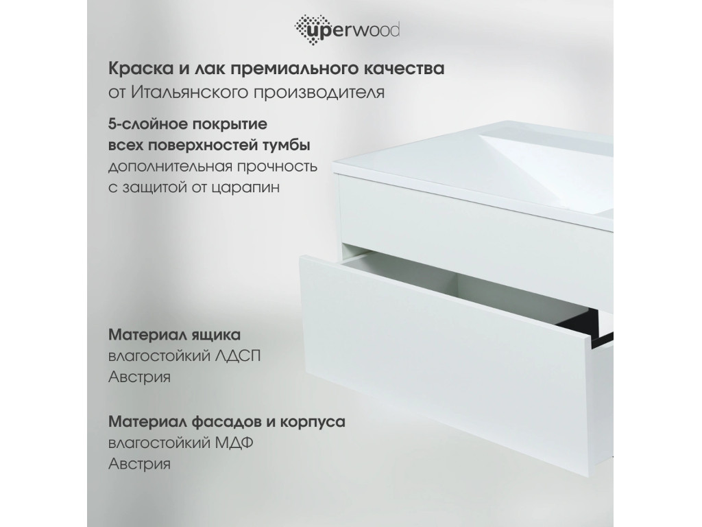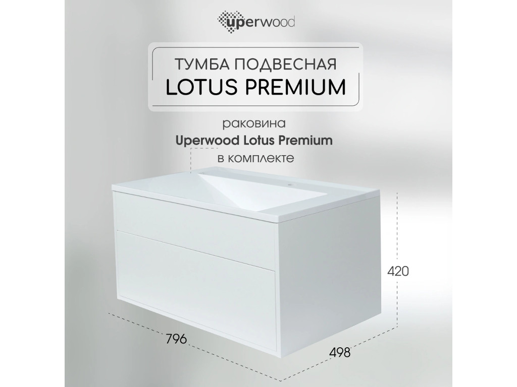 - Тумба с раковиной Uperwood Lotus Premium белая 80 см