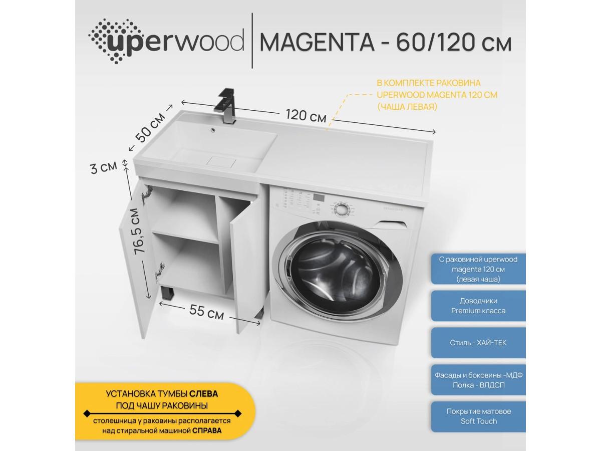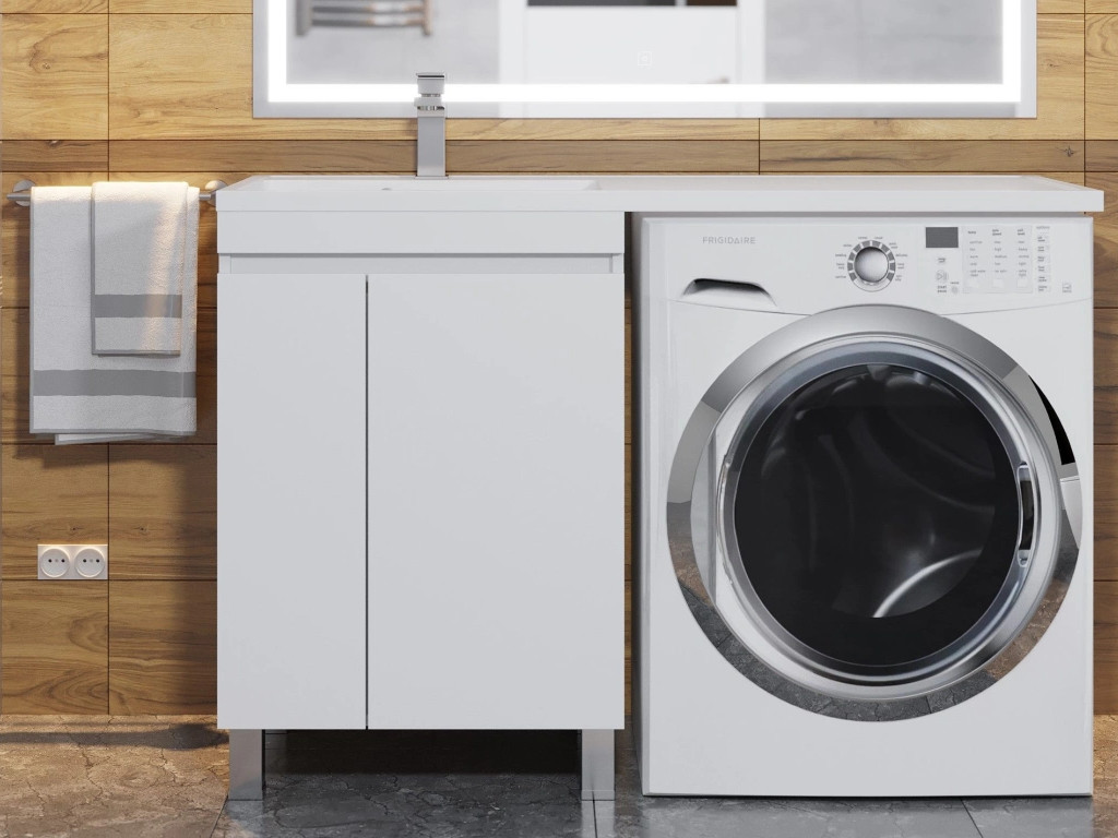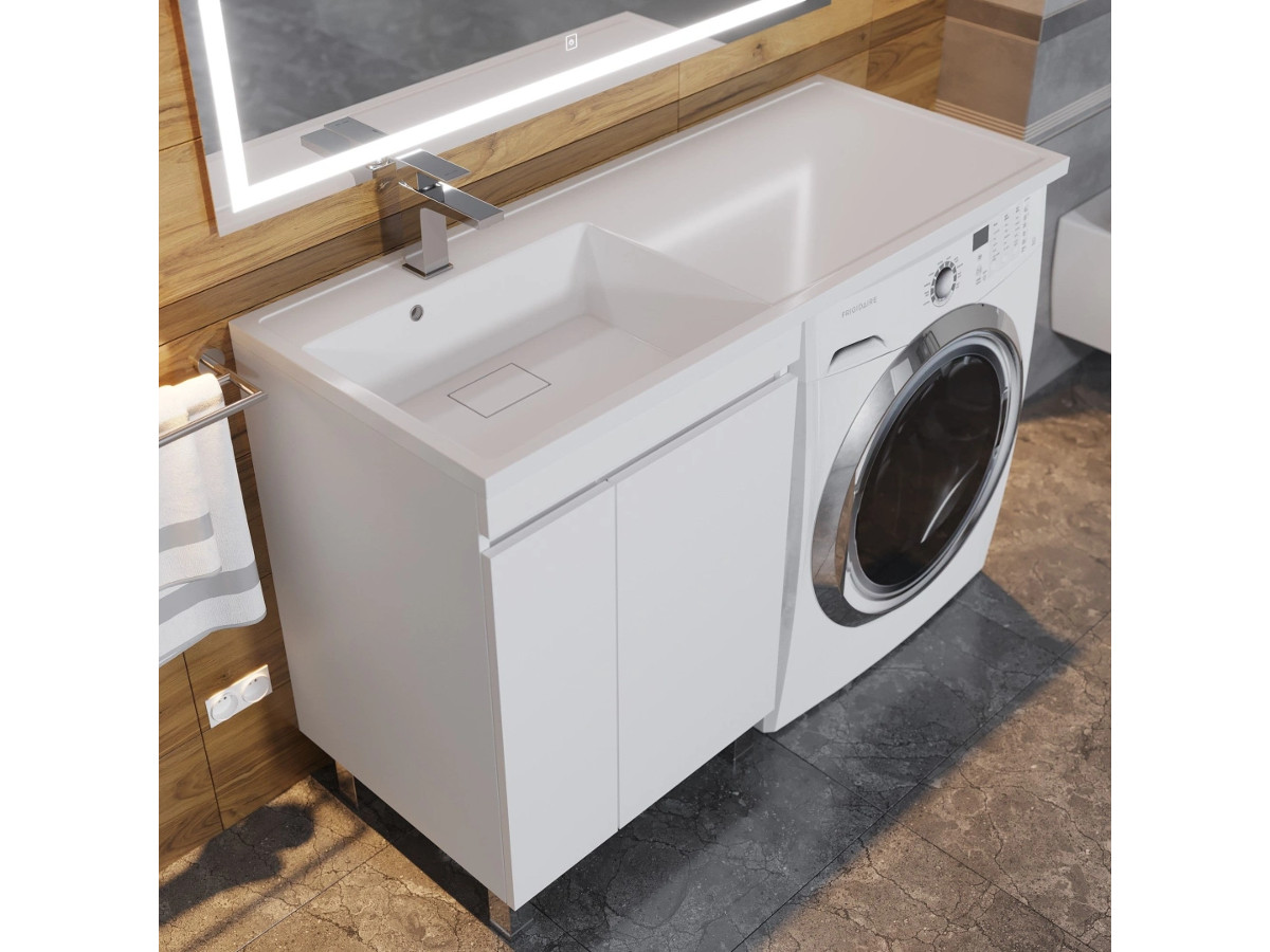 - Тумба с раковиной Uperwood Magenta 60-120 см напольная белая с дверцами левая