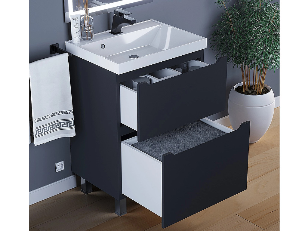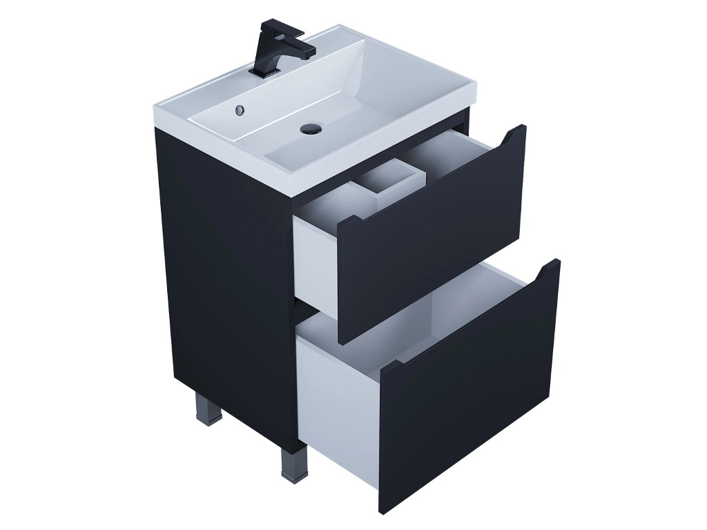 - Тумба с раковиной Uperwood Tanos 2 ящика напольная 60 см черная