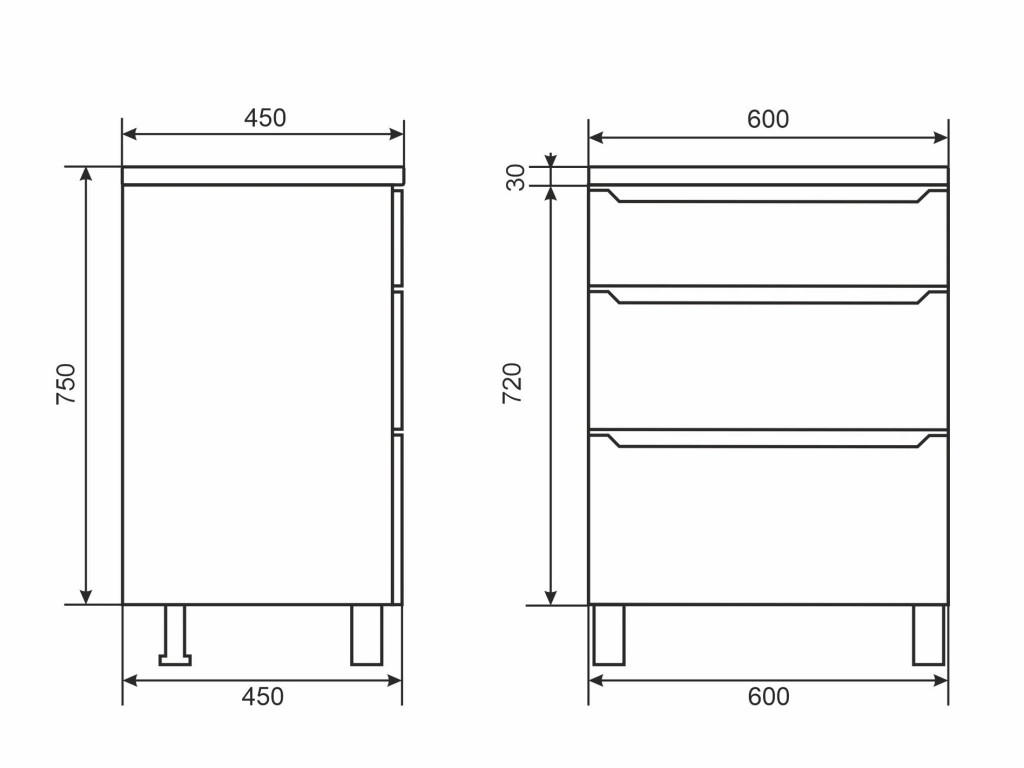 - Тумба с раковиной Uperwood Tanos 3 ящика напольная 60 см белая