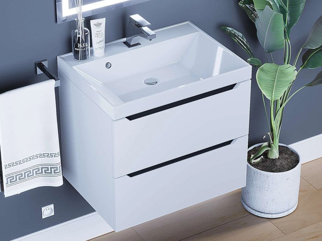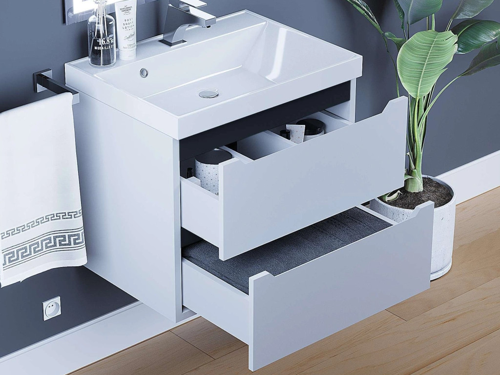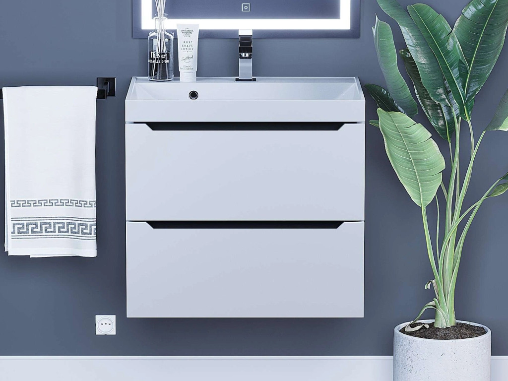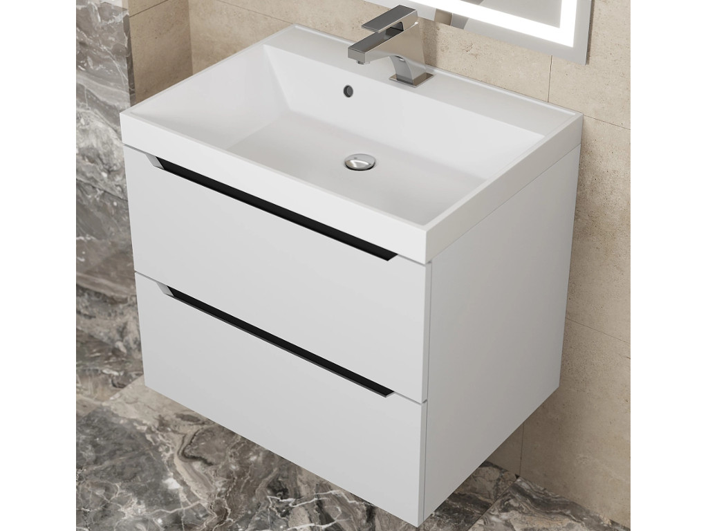 - Тумба с раковиной Uperwood Tanos матовая белая/графит 60 см
