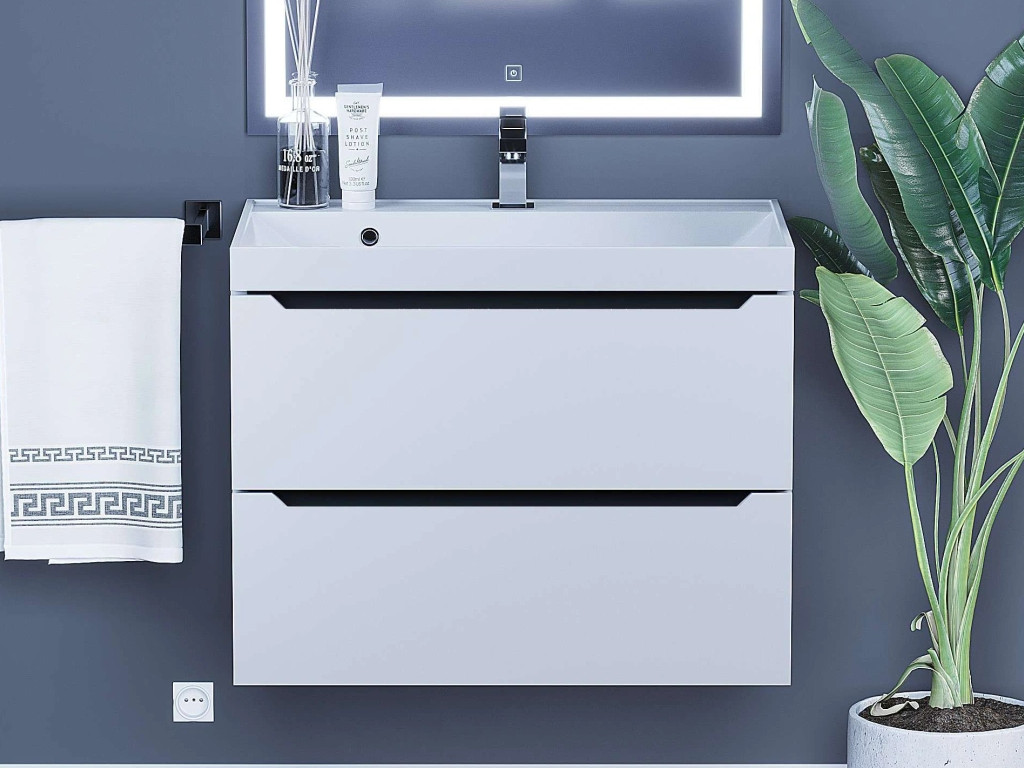 - Тумба с раковиной Uperwood Tanos матовая белая/графит 70 см