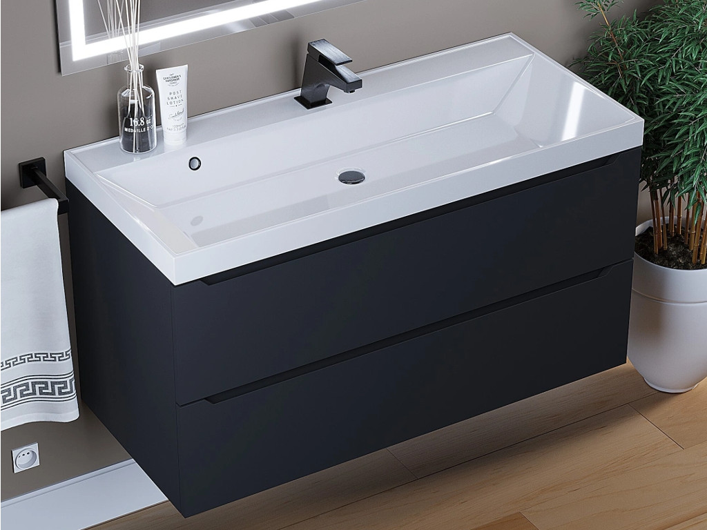 - Тумба с раковиной Uperwood Tanos матовая черная 100 см
