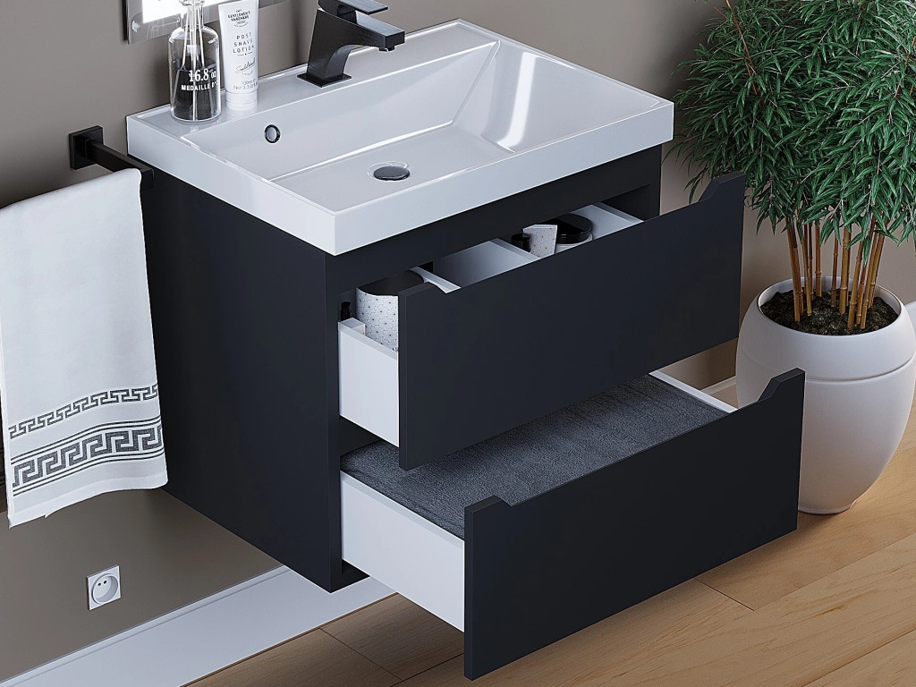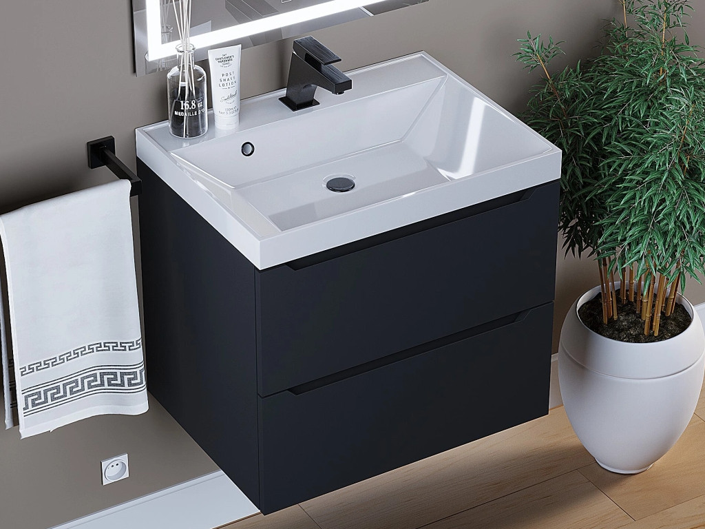 - Тумба с раковиной Uperwood Tanos матовая черная 60 см