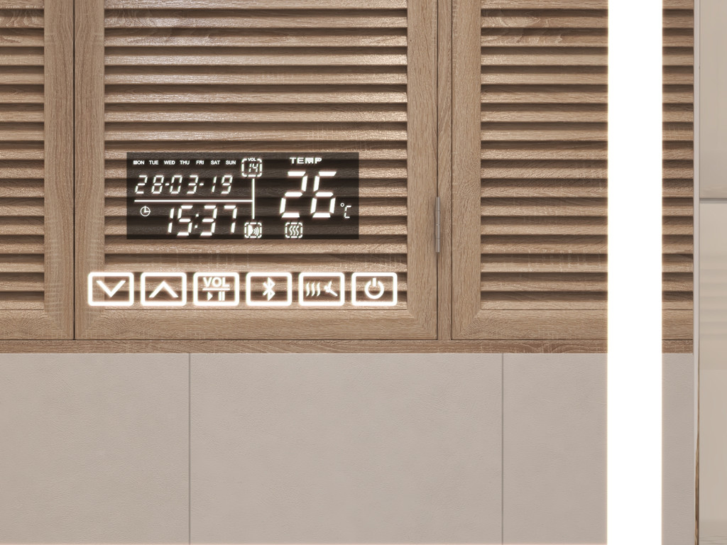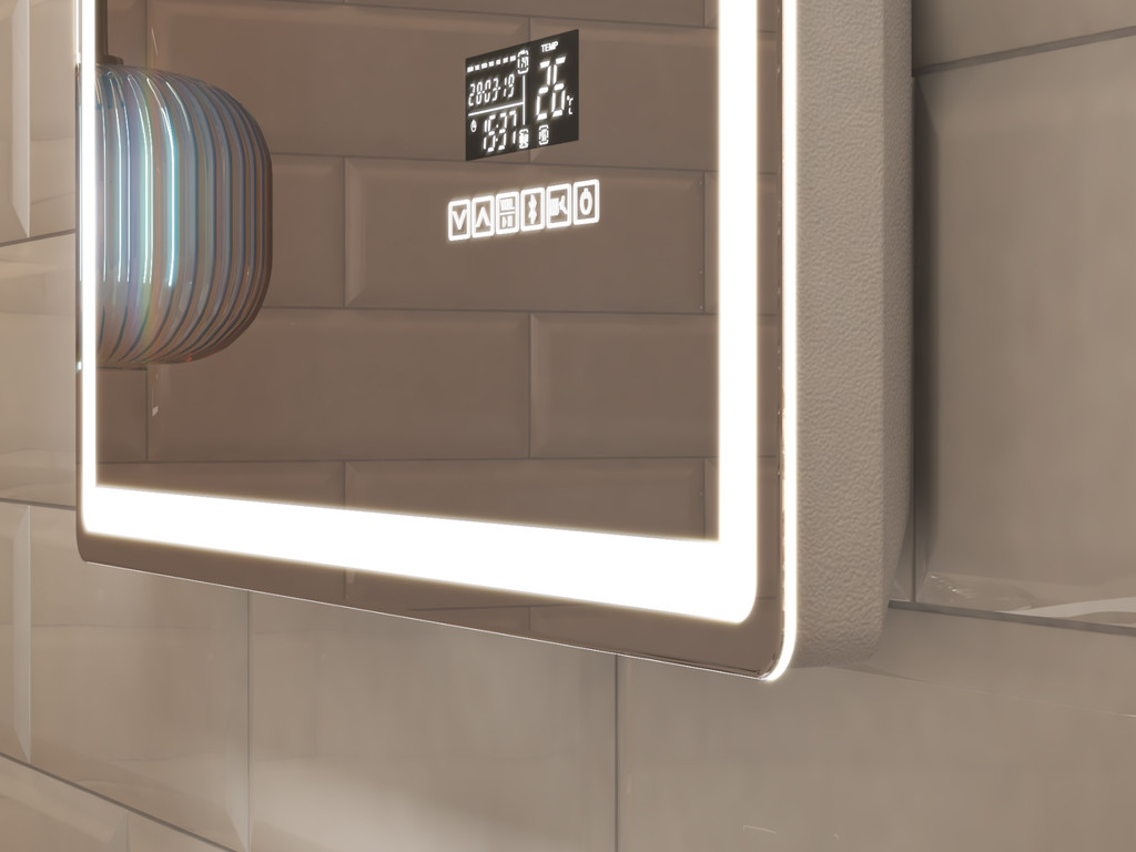 Подсветка фронтальная по периметру, с цветовой температурой 5000К – нейтральный белый, управление подсветкой сенсорное, голосовое