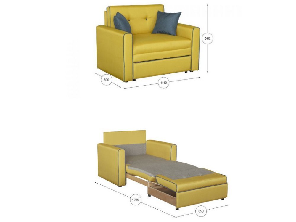- Диван-кровать Найс 85 ТД 113 Темно-серый/горчичный