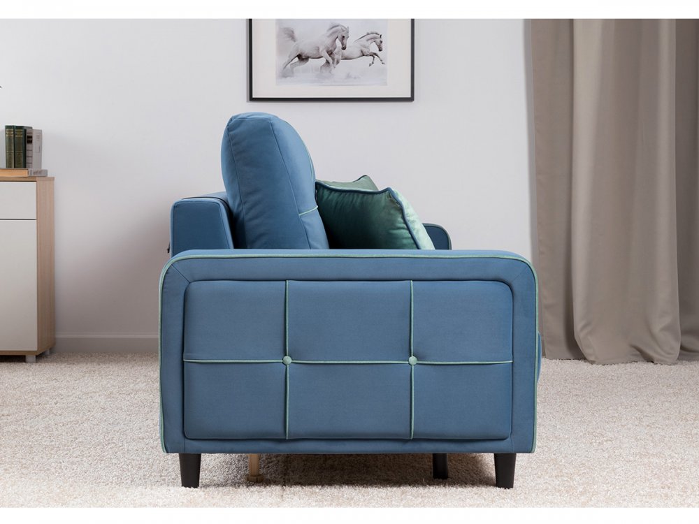 - По торцам подлокотников и думках контрастный декоративный кант.