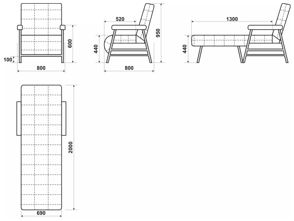 Наполнитель: в основании спального места матрас из высокоэластичного пенополиуретана средней жесткости толщиной 8 см, с дополнительным покрытием термовойлок, чехлы съемный на синтепоне.