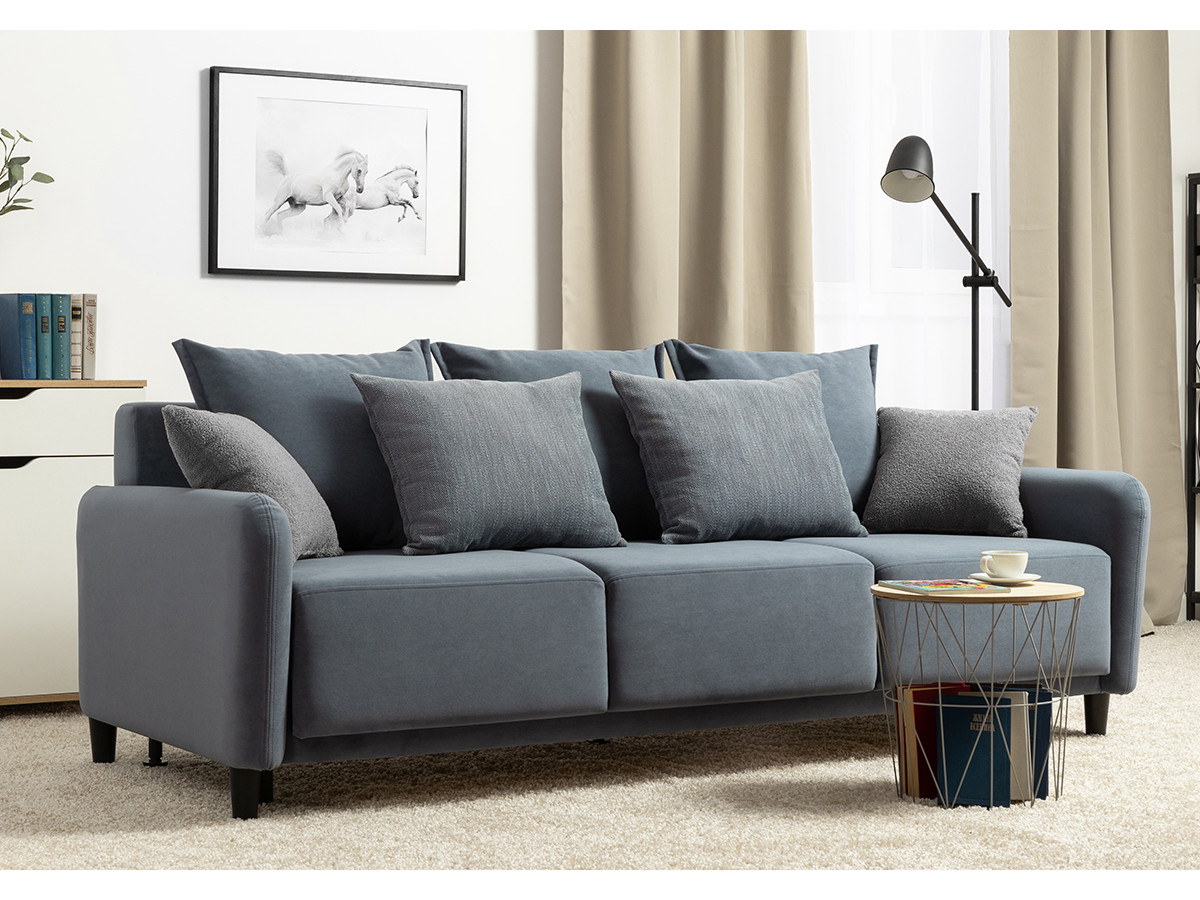 Декор: В комплекте 2 двусторонние декоративные подушки и 2 декоративные думки. Задняя спинка в ткани основы. Декоративные отделочные строчки по боковинам и сиденью