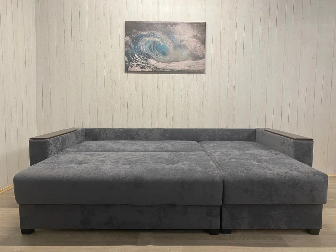 - Диван Комфорт-3 ПБ+МДФ Тик-Так велюр Sensey steel grey