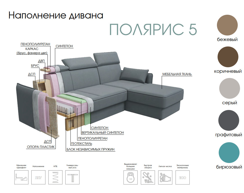 Диван Полярис 5 ПДУ NEW