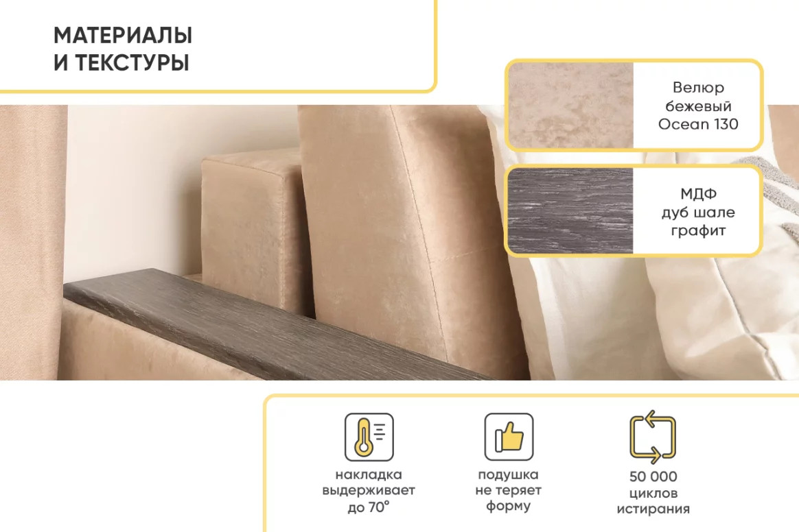 Цвет: велюр Бежевый Ocean 130