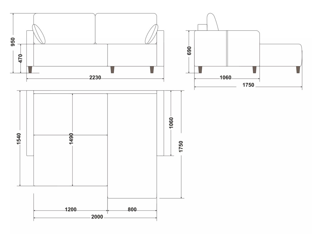 Размеры дивана (мм): 2400*1750*950