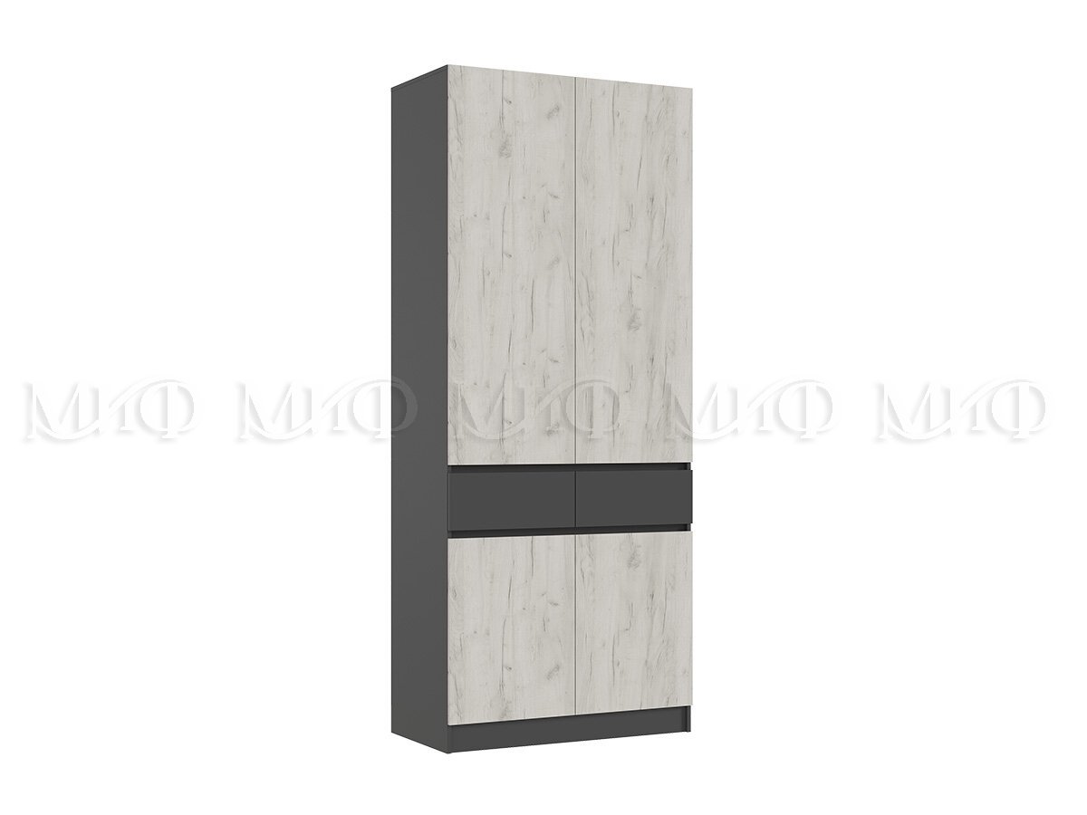 - Шкаф 2-х створчатый Роджина Графит/Дуб Крафт Белый